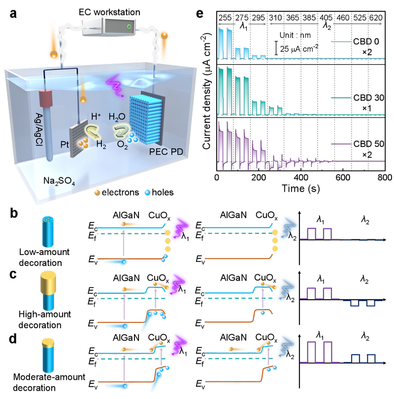 近日,我院GaN-X Lab課題組在氮化鎵基紫光探測(cè)領(lǐng)域取得重要研究進(jìn)展,通過構(gòu)建II型AlGaN/CuOx異質(zhì)結(jié),利用...