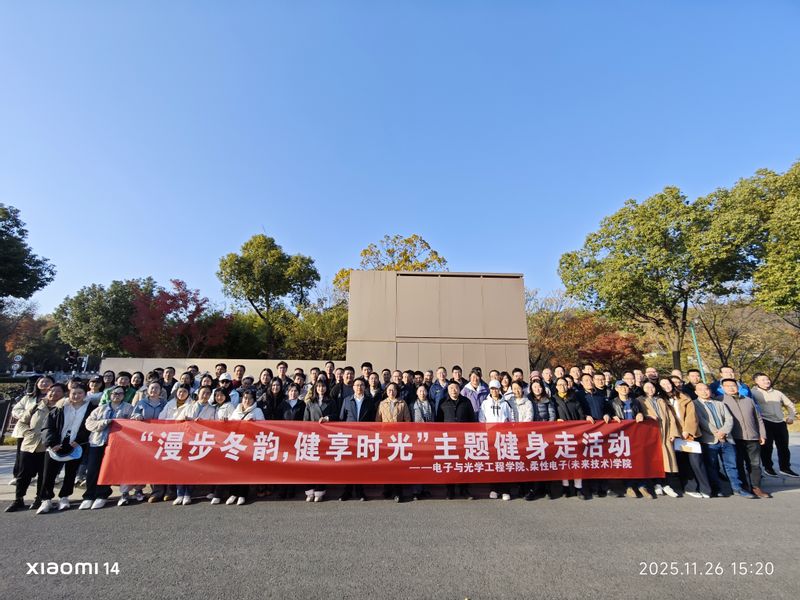為迎接學(xué)院黨代會(huì)勝利召開,讓全體教職工在自然中放松身心、在運(yùn)動(dòng)中凝聚力量,11月26日下午,電子與光學(xué)工程學(xué)院、柔性電子(未來技術(shù))學(xué)院工會(huì)精心策劃“漫步冬韻,健享時(shí)光”主題健身走活動(dòng),組織全院教師走進(jìn)羊山公園,共赴一場(chǎng)冬日美景與健康活力的雙向之約。下午三點(diǎn),參與活動(dòng)的教師們齊聚公園入口廣場(chǎng),臉上洋溢著期待與喜悅。學(xué)院黨委書記黃麗亞致辭,她表示,此次健身走活動(dòng)既是響應(yīng)“全民健身”號(hào)召、關(guān)愛教職工身心健康的暖心舉措,也是學(xué)院以團(tuán)結(jié)奮進(jìn)風(fēng)貌迎接黨代會(huì)的生動(dòng)實(shí)踐。“希望大家在漫步中欣賞冬景、在同行中增進(jìn)情誼,把運(yùn)動(dòng)帶來的活力與激情,轉(zhuǎn)化為教書育人、干事創(chuàng)業(yè)的強(qiáng)大動(dòng)力,共同為學(xué)院高質(zhì)量發(fā)展蓄力賦能。”致辭結(jié)束后,教師們邁著矯健的步伐有序啟程,沿著蜿蜒的環(huán)湖步道展開了一場(chǎng)與冬日的親密邂逅。活動(dòng)結(jié)束后,教師們?cè)诠珗@入口處集體合影。此次健身走活動(dòng)全程約5公里,路程雖不算長,卻讓老師們?cè)诜泵Φ墓ぷ髦啵叱隽诵@、走進(jìn)了自然,既鍛煉了身體、舒緩了壓力,更增進(jìn)了彼此間的溝通與情誼。電子與光學(xué)工程學(xué)院、柔性電子(未來技術(shù))學(xué)院工會(huì)未來將繼續(xù)聚焦教職工需求,秉持“服務(wù)教職工、凝聚向心力”的宗旨,組織更多形式
