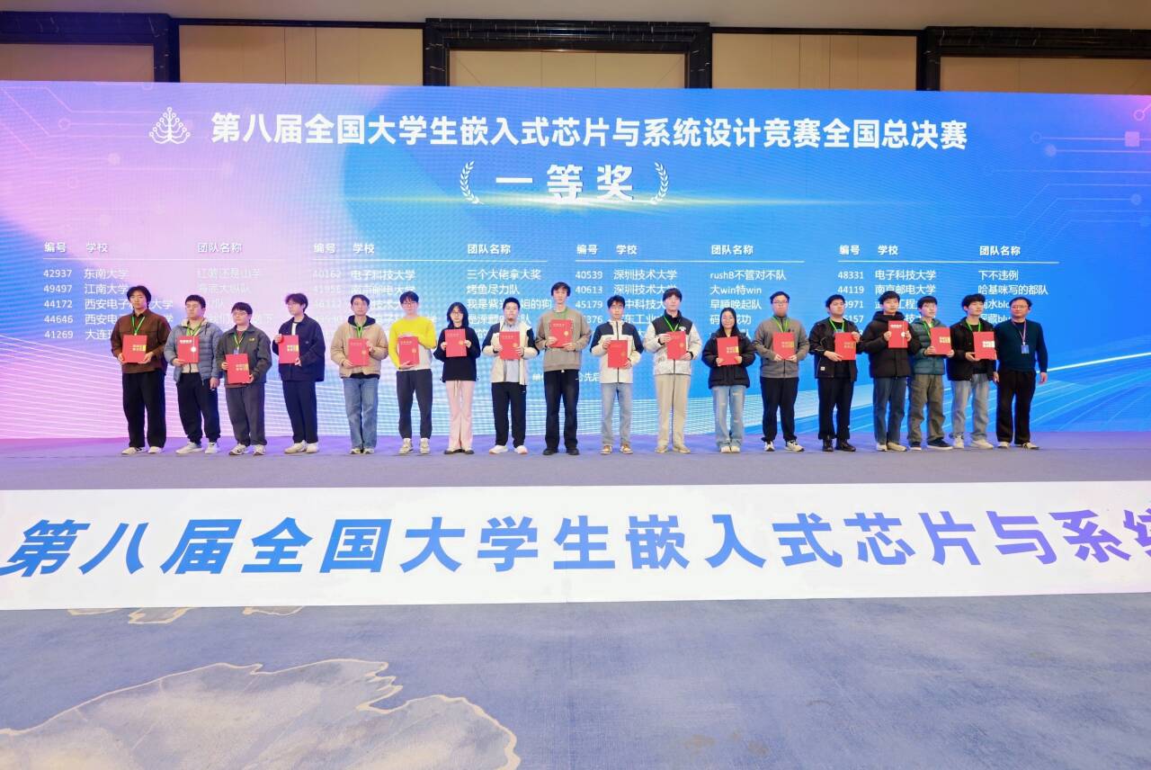 11月30日,2025年全國大學(xué)生嵌入式芯片與系統(tǒng)設(shè)計(jì)競(jìng)賽-芯片設(shè)計(jì)賽道決賽與FPGA創(chuàng)新設(shè)計(jì)賽道決賽在南京落下帷幕。南京郵電大學(xué)參賽隊(duì)獲全國一等獎(jiǎng)8項(xiàng)(芯片設(shè)計(jì)賽道1項(xiàng),F(xiàn)PGA賽道7項(xiàng)),國家一等獎(jiǎng)數(shù)位列全國高校第二名、其中我院學(xué)生獲得國家一等獎(jiǎng)4項(xiàng),國家二等獎(jiǎng)4項(xiàng),國家三等獎(jiǎng)5項(xiàng)。FPGA創(chuàng)新設(shè)計(jì)大賽是全國嵌入式芯片與系統(tǒng)設(shè)計(jì)競(jìng)賽三個(gè)專項(xiàng)賽之一,全國大學(xué)生嵌入式芯片與系統(tǒng)設(shè)計(jì)競(jìng)賽由中國電子教育學(xué)會(huì)主辦,旨在提高全國高校學(xué)生在嵌入式芯片及系統(tǒng)設(shè)計(jì)領(lǐng)域、可編程邏輯器件應(yīng)用領(lǐng)域自主創(chuàng)新設(shè)計(jì)與工程實(shí)踐能力,培養(yǎng)具有創(chuàng)新思維、具備解決復(fù)雜工程問題能力且擁有團(tuán)隊(duì)合作精神的優(yōu)秀人才。序號(hào)學(xué)生姓名學(xué)號(hào)獲獎(jiǎng)等級(jí)指導(dǎo)老師1于沛田B24021509國家一等獎(jiǎng)郝學(xué)元、黃麗亞陶宸涵B240200282曹聞達(dá)B23020525國家一等獎(jiǎng)郝學(xué)元、諶靜李澤B230200183陳奕帆B23090625國家一等獎(jiǎng)郝學(xué)元、崔國印季子超B240208204胡鑫媛B23020503國家一等獎(jiǎng)謝祖帥、郝學(xué)元王譯B23021409(撰稿:郝學(xué)元 編輯:徐偉 審核:諶靜)